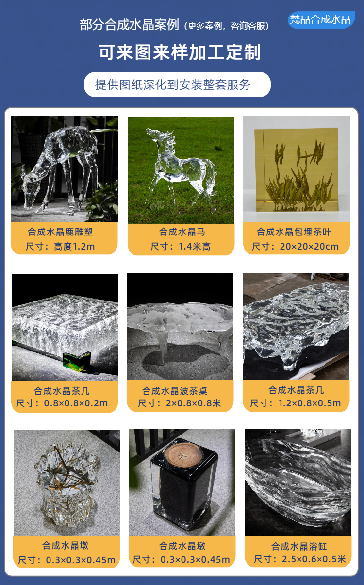 合成水晶雕塑制作 高硬度透明长期不变黄 铂金材质造型厂家 梵晶