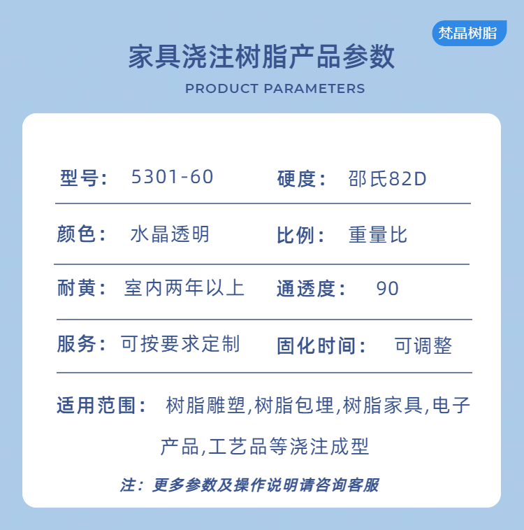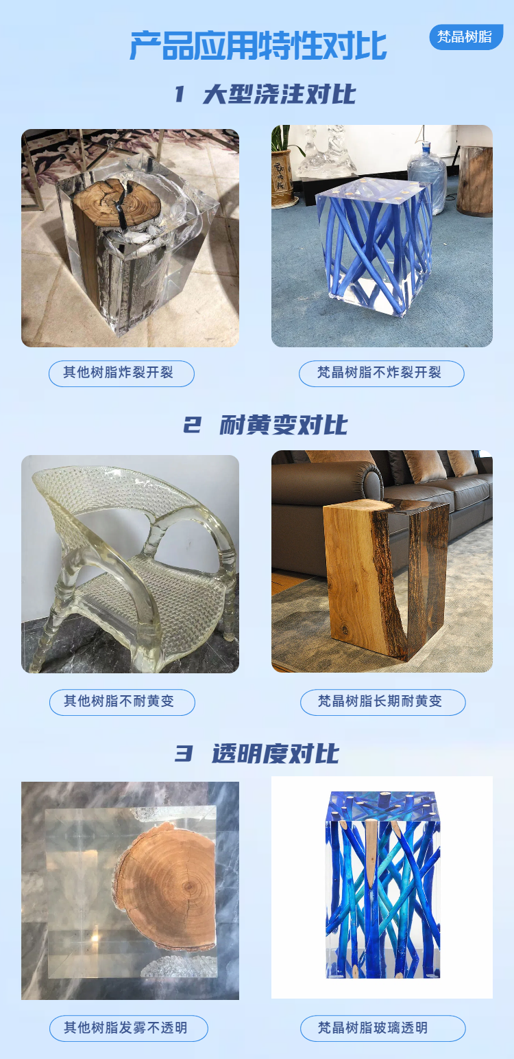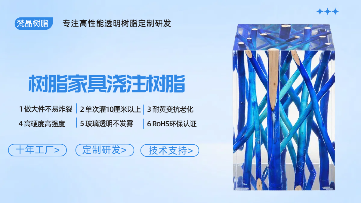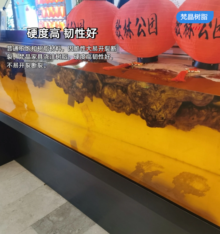 梵晶家具浇注树脂,硬度高韧性好,不易开裂断裂。