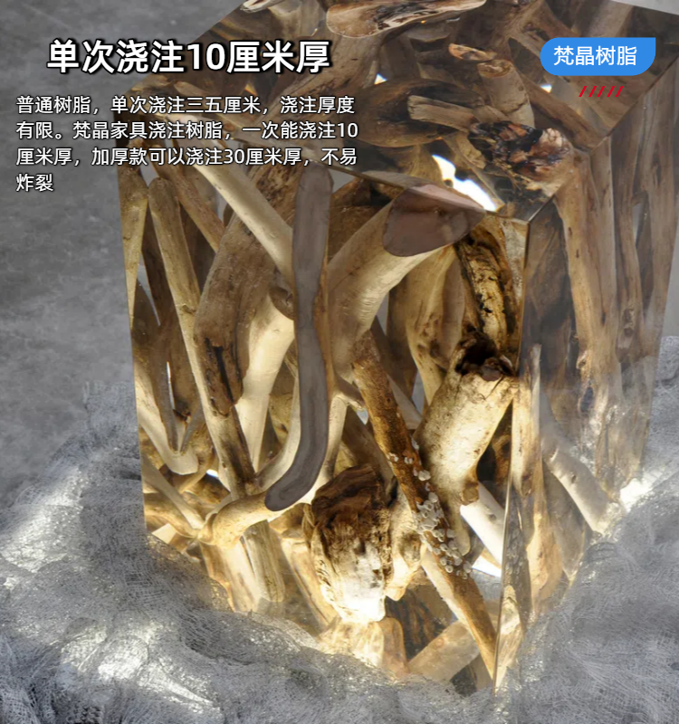 梵晶家具浇注树脂,一次能浇注10厘米厚,不易炸裂