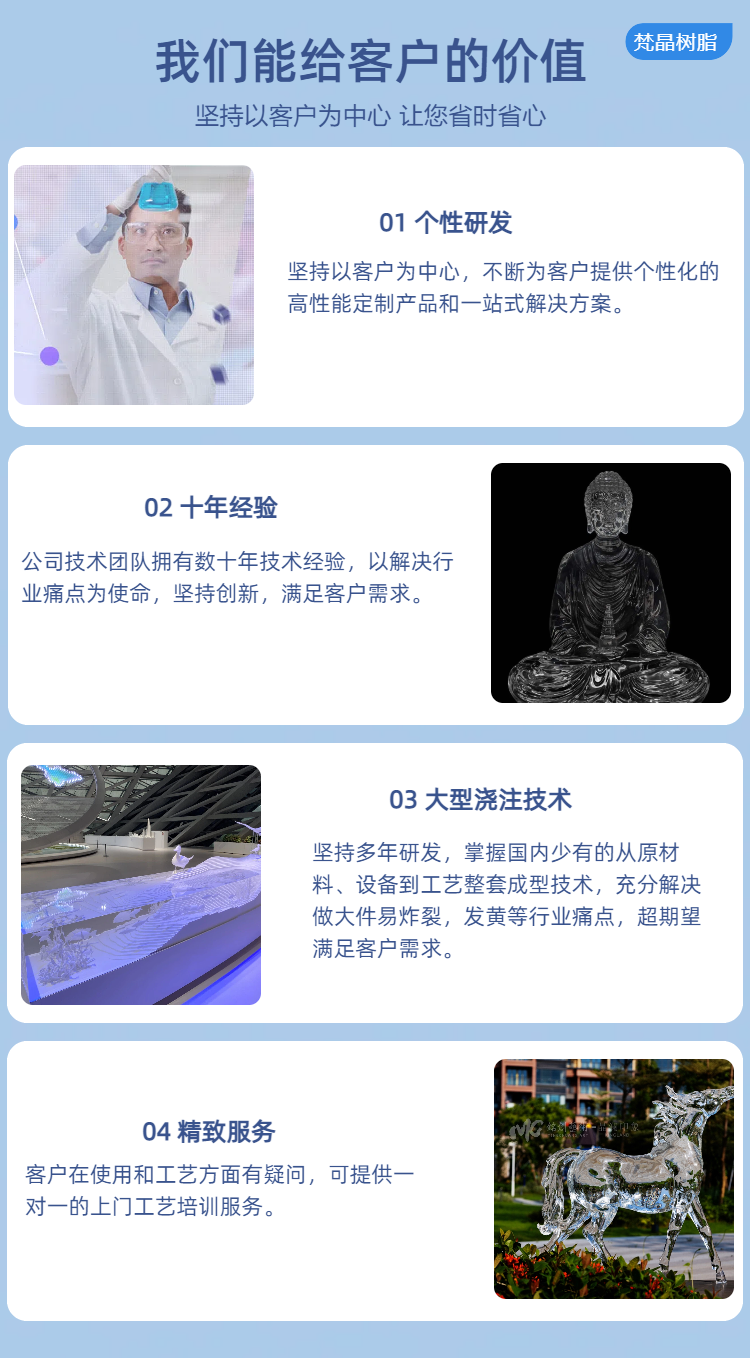 上一篇:艺术品雕塑大件高透树脂 耐黄变高透明大型浇注水晶树脂